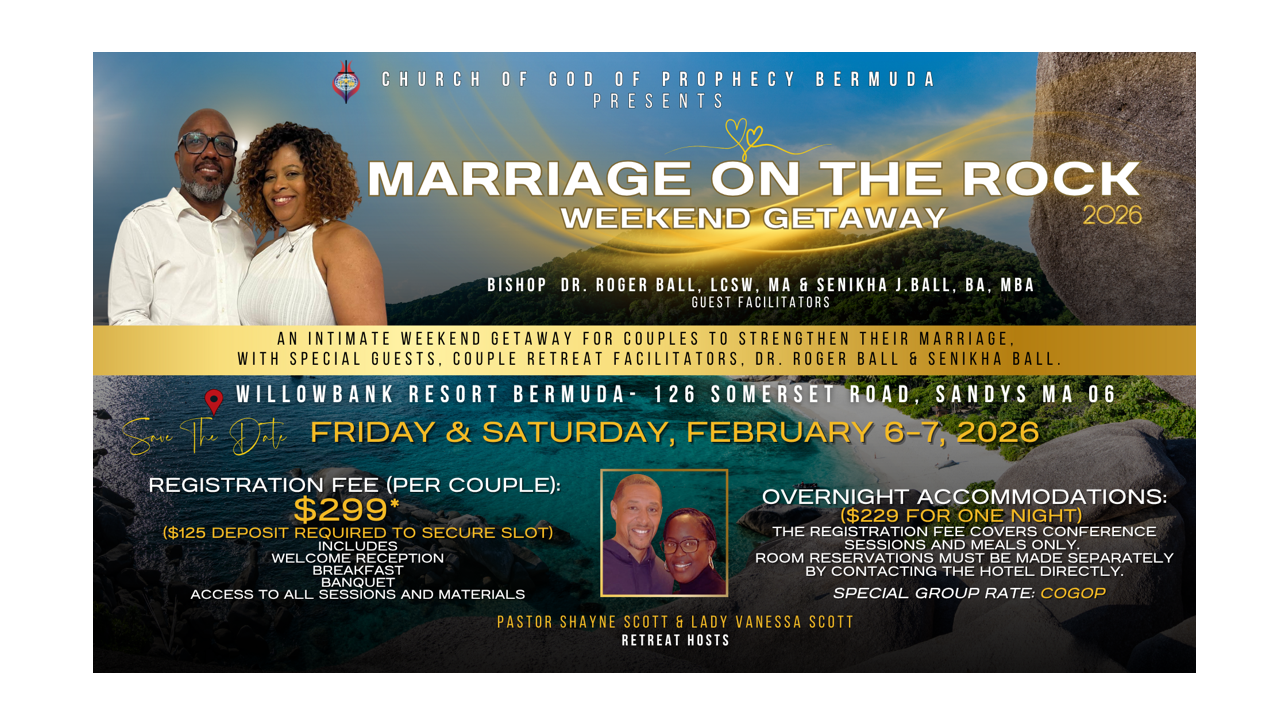A romantic mini weekend getaway that encourages you to invest in and strengthen your marriage―no matter how firm or fragile. No matter what life has brought. Breathe easy. It is not a large group counseling session. You’re not asked to share intimate details of your relationship with the entire group. The weekend is filled with informative group sessions that will be delivered by our dynamic guest speakers – Dr. Roger Ball and Lady Senikha Ball. There will be interactive and fun activities, and precious alone time with your spouse. We will share timeless principles and tools to help all relationships, while infusing Biblical principles to encourage you in the marriage journey. Dr. and Lady Ball have hosted and facilitated marriage retreats across the United States and throughout the Caribbean for almost 20 years now, and have witnessed strengthening, bonding, healing, restoration, and reconciliation of relationships time and time again. Whether you are deliriously-in-love, newlyweds, on-the-verge of separation, or well-seasoned and content, the weekend promises to have something for you.